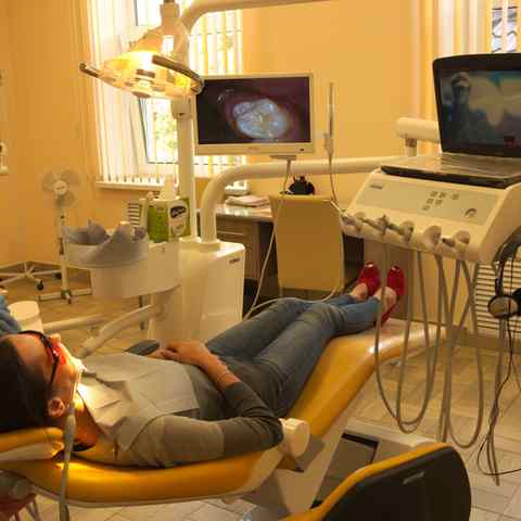 В стоматологии «Террастом» можно насладиться уютной атмосферой, фоновая музыка поможет расслабиться и избавиться от страха перед стоматологическим креслом.